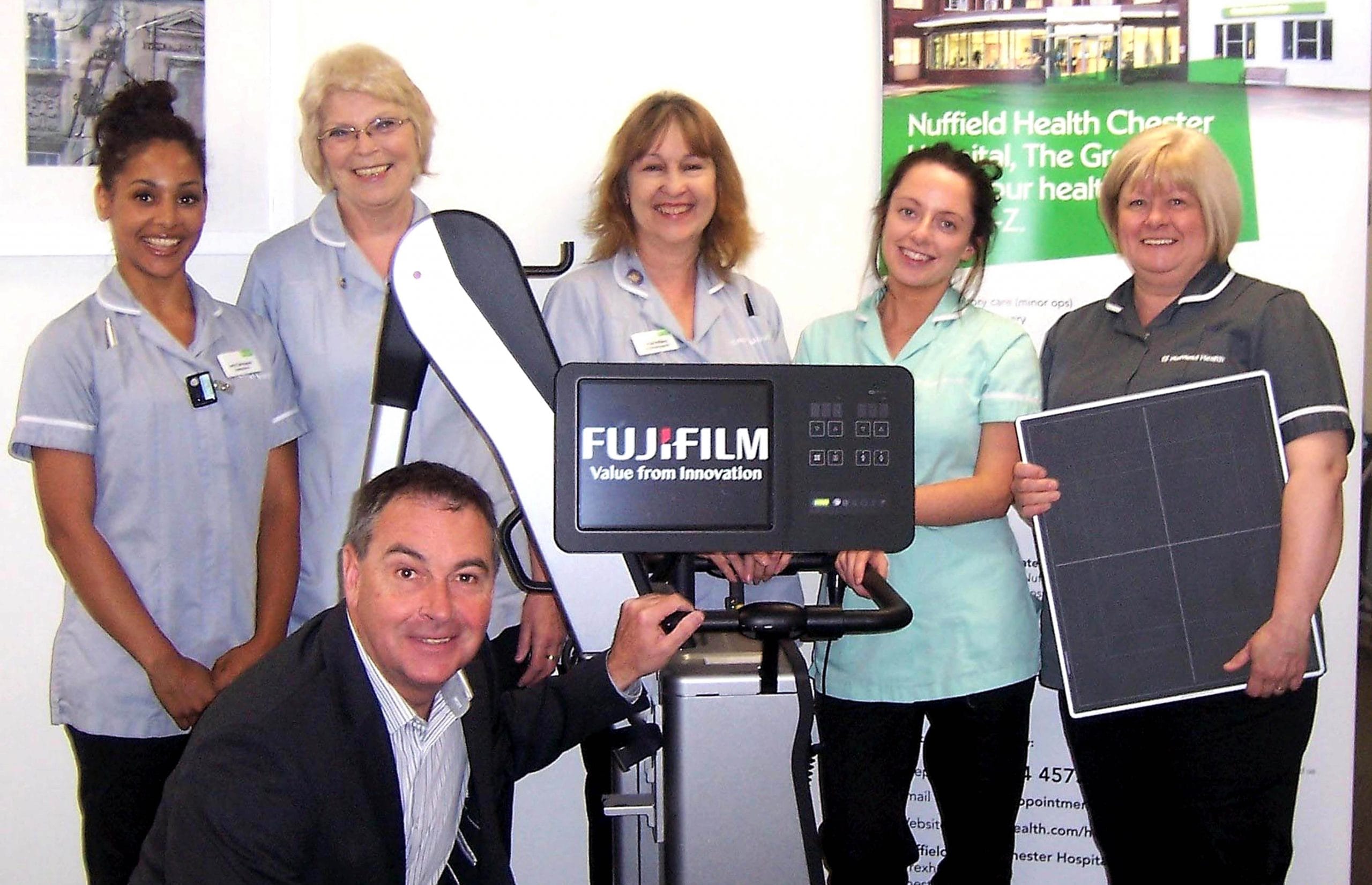 Radiographers Amy Campagne, Gill Roberts and Mariola Williams, healthcare assistant Lauren Miller, radiology manager Adele Maddison and Fujifilm account manager Richard Evans.