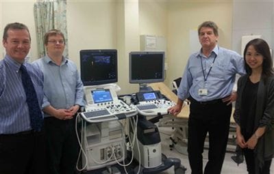 GE Healthcare ultrasound sales specialist John Rimmer with consultant rheumatologists Dr Richard Wakefield, Professor Paul Emery and Dr Catherine Yeun. The rheumatology department at Chapel Allerton Hospital, Leeds, has taken delivery of GE Healthcare Logiq E9 with XDclear and Logiq S7 ultrasound systems. Consultant rheumatologist Dr Richard Wakefield said: “We are very excited to have […]